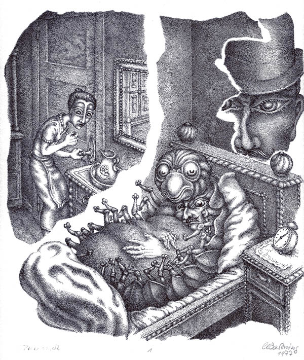 nach zahlreichen Einzelbildern zu Erzählungen zu Kafka, auch zur Verwandlung.