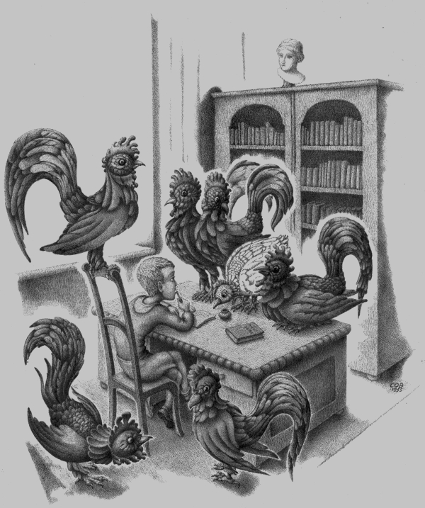 Die Zeichnung "meines Vaters Hühner" ist die Illustration zu einer Kurzgeschichte