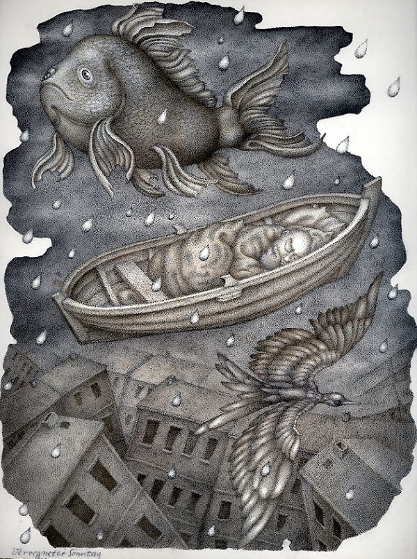 Die anderen Zeichnungen sind Erinnerungen an Träume. "Der Traum und das Leben"