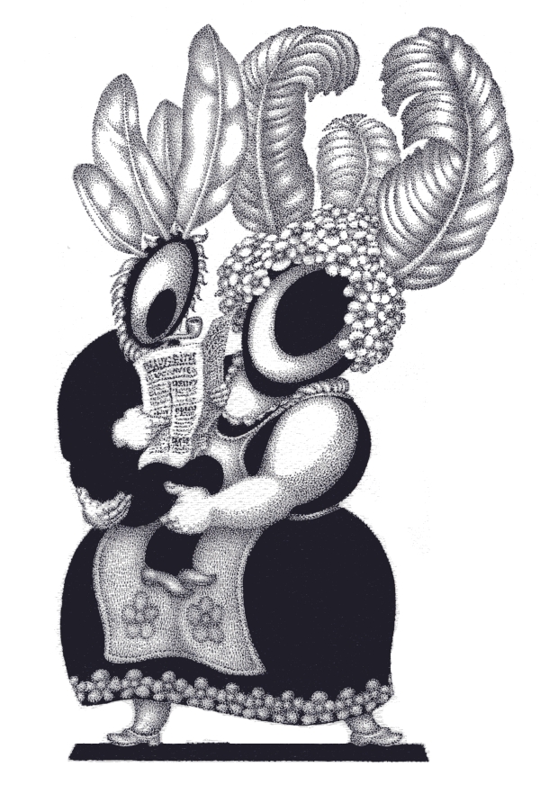 2. Eine Reihe von einfarbig schwarzen Federzeichnungen für die Reproduktion im Offsetdruck