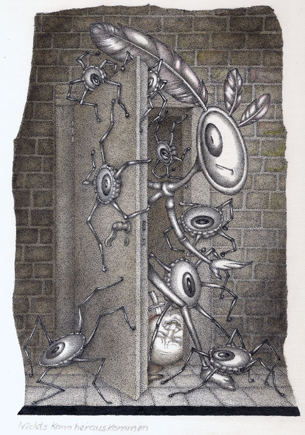 Dies Federzeichnungen zum Thema "Nichts" aus den Jahren 1979 und 1980 entstanden